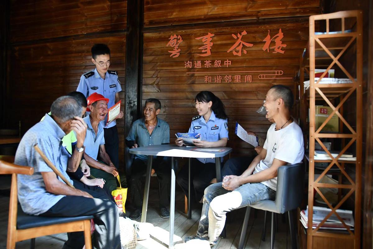 7月12日,福建省壽寧縣公安局下黨派出所民警再次邀請轄區(qū)群眾走進(jìn)“警事茶樓”,向他們宣傳反詐知識,切實(shí)增強(qiáng)反詐意識和辨別能力。圖為民警向群眾講解反詐案例。