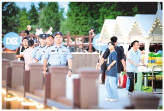 7月18日晚,2023烏巾蕩啤酒龍蝦節(jié)在江蘇大公園(興化)正式開(kāi)幕,現(xiàn)場(chǎng)1040個(gè)座位座無(wú)虛席。為了守護(hù)夏日煙火氣,護(hù)航本地夏日經(jīng)濟(jì),興化市公安局提前謀劃周密部署,每日出動(dòng)警力150余人次,以“定人、定崗、定責(zé)”工作原則,確?;顒?dòng)安全有序進(jìn)行。圖為執(zhí)勤警力在現(xiàn)場(chǎng)巡邏。