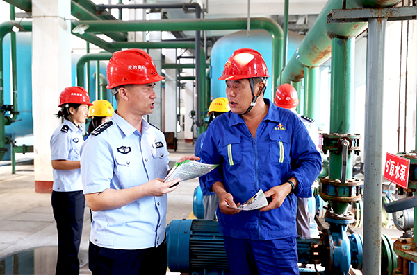 近日,河北省東光縣公安局開展以“綠水青山就是金山銀山”為主題的普法宣傳活動。圖為民警走進(jìn)綠色化工企業(yè)進(jìn)行普法宣傳。