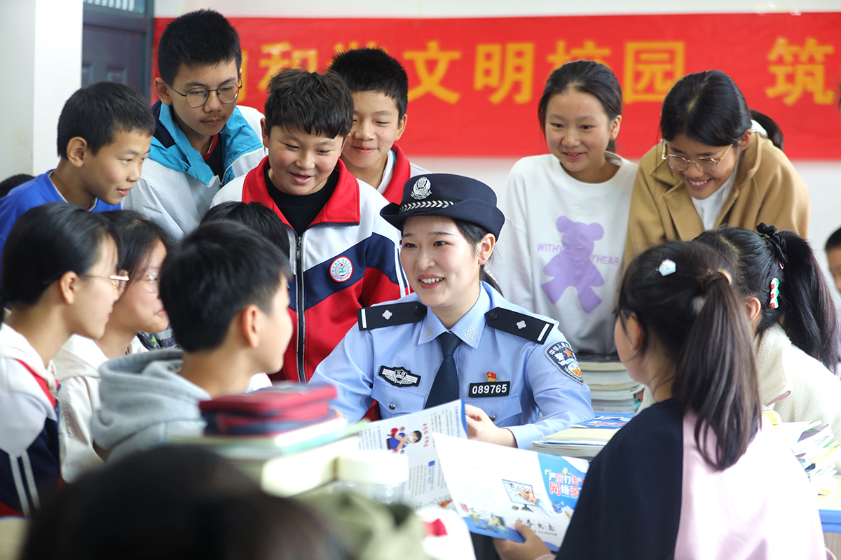 10月24日,安徽省舒城縣公安局網(wǎng)監(jiān)大隊聯(lián)合五顯派出所來到五顯鎮(zhèn)中心學校開展“網(wǎng)絡(luò)安全教育進課堂”宣傳活動,普及抵制網(wǎng)絡(luò)謠言、共筑文明網(wǎng)絡(luò)空間的安全防護知識,引導學生增強網(wǎng)絡(luò)安全意識。圖為民警回答學生有關(guān)網(wǎng)絡(luò)安全的提問。 本報通訊員 王可海 攝
