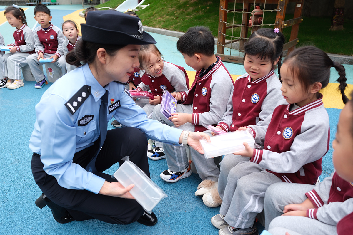 近日,杭州鐵路公安處嘉興站派出所民警組成愛(ài)路護(hù)路宣傳小分隊(duì),來(lái)到嘉興市第三幼兒園開(kāi)展安全宣傳活動(dòng)。圖為民警向小朋友講解鐵路安全及乘車(chē)安全知識(shí)。 本報(bào)通訊員 賀瑞明 徐燁 攝
