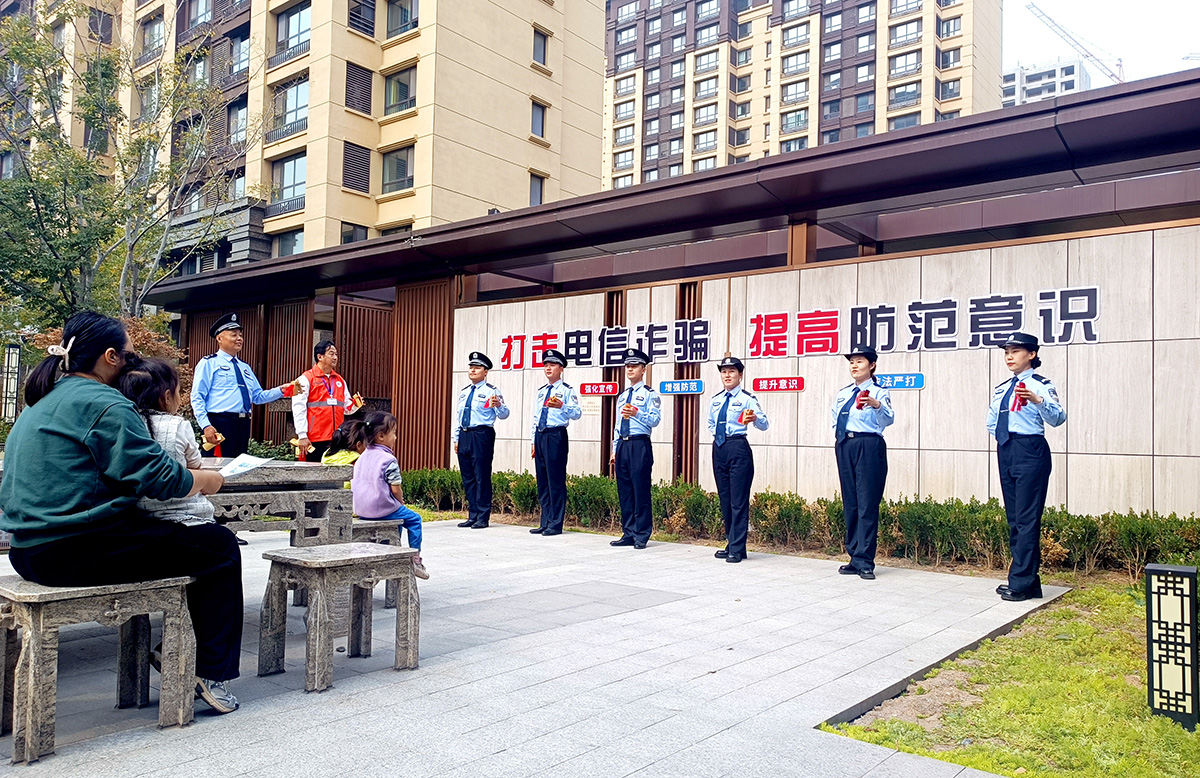 連日來,山東棗莊滕州市公安局北辛派出所精心編排“反詐情景劇”,用群眾喜聞樂見的文藝演出形式,向居民傳授識(shí)別、防范詐騙手段的方法。圖為民警表演“反詐情景劇”向居民宣傳反詐知識(shí)。 本報(bào)通訊員 季龍 攝