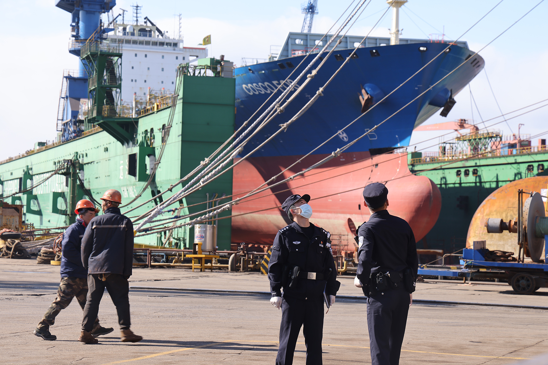 近日,遼寧大連出入境邊防檢查站出臺服務(wù)海港口岸高質(zhì)量發(fā)展十一項(xiàng)措施提升通關(guān)便利化水平,內(nèi)容包括創(chuàng)新實(shí)現(xiàn)邊檢通關(guān)進(jìn)度“一鍵直推”、開通“邊檢即時通”平臺、保障特定類型船舶“特辦快辦”等。圖為11月14日,民警走訪造船企業(yè)。
