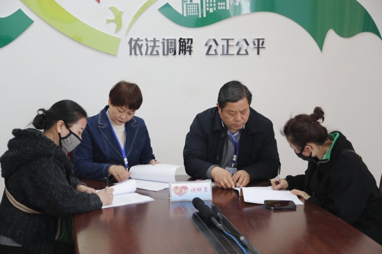 11月17日,河南省開封市宋都人民調(diào)解委員會調(diào)解員與律師聯(lián)手化解一起糾紛,當(dāng)事雙方現(xiàn)場簽訂調(diào)解協(xié)議。