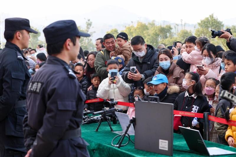 警察節(jié)到來之際,浙江省舟山市公安局近日在市綜合警務(wù)訓(xùn)練基地舉行警營開放日活動(dòng),市民現(xiàn)場零距離體驗(yàn)警務(wù)裝備以及觀看警用無人機(jī)、警用摩托車、重裝防爆小隊(duì)技戰(zhàn)術(shù)等科目表演。圖為市民零距離體驗(yàn)警務(wù)裝備。