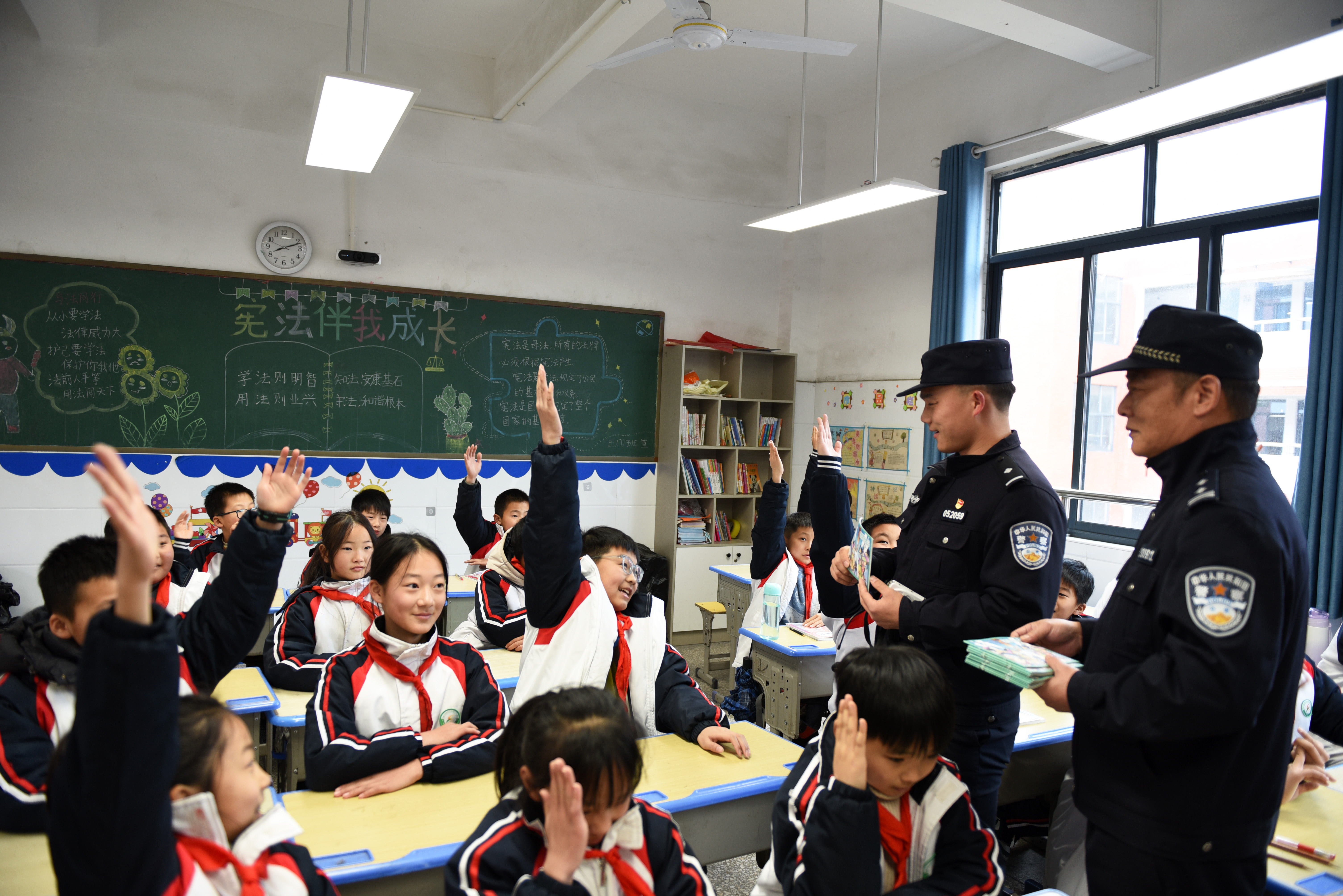 龍年春季開學(xué)伊始,江西省分宜縣公安局組織民警走進(jìn)轄區(qū)校園,為學(xué)生普及交通安全、校園欺凌、抵制毒品等相關(guān)法律知識(shí)。圖為2月26日,民警為分宜四小學(xué)生上安全教育“開學(xué)第一課”。