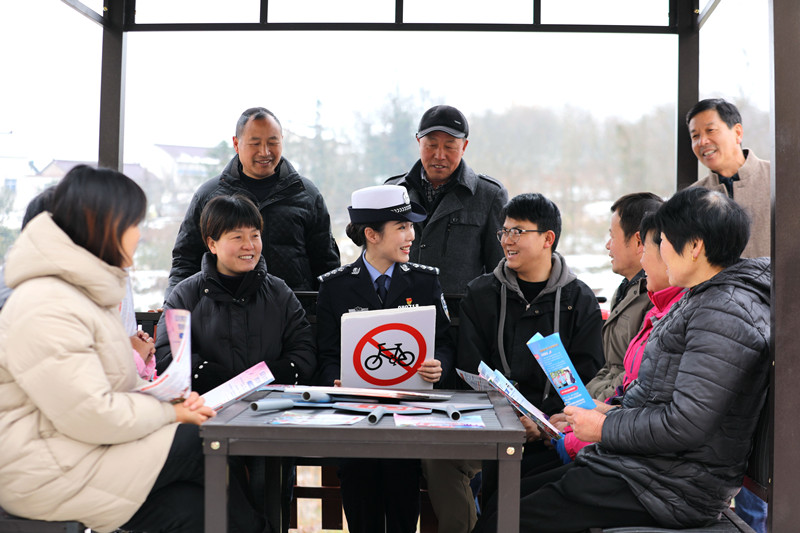 2月26日,安徽省舒城縣公安局交管大隊(duì)民警來(lái)到闕店鄉(xiāng)楓嶺村開(kāi)展交通安全宣傳活動(dòng),民警通過(guò)拉家常方式向村民普及道路交通安全法律法規(guī),提醒廣大村民安全文明出行。圖為民警向村民講解道路交通安全知識(shí)。