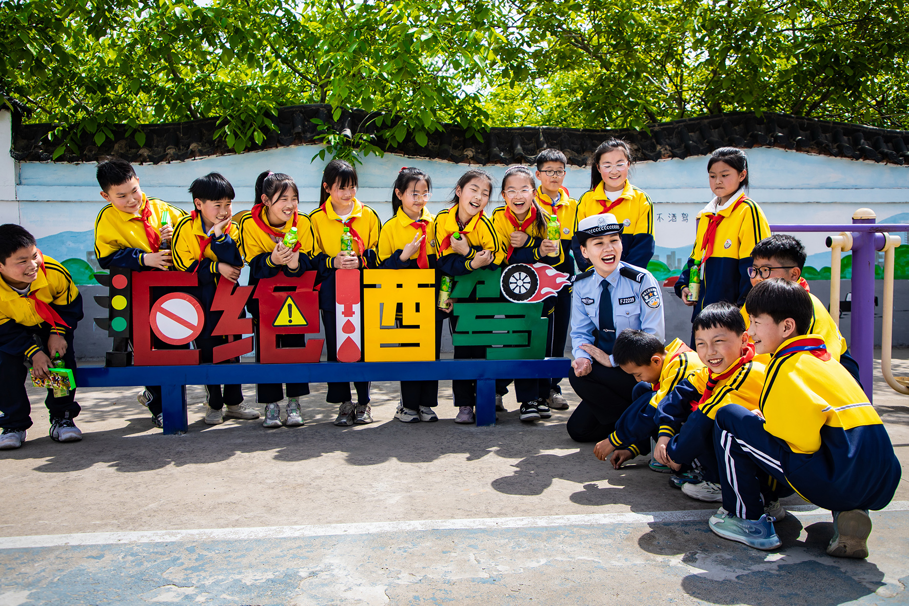 4月17日,山東省滕州市公安局交警大隊(duì)組織學(xué)生在卓莊村交通安全主題公園開展“拒絕酒駕”交通安全宣傳活動(dòng),民警用通俗易懂的語(yǔ)言講解酒駕的危害性。