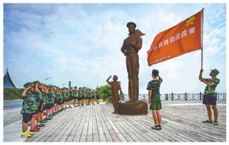 參加山東省青島市青少年軍事夏令營的孩子們在海軍公園同心筑夢廣場集合。 劉瑋 攝