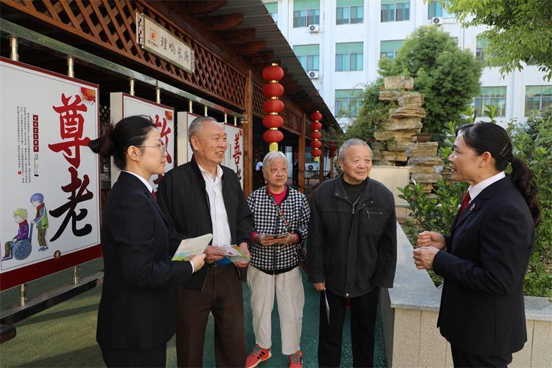 10月11日重陽節(jié),江蘇省靖江市人民檢察院干警走進(jìn)養(yǎng)老服務(wù)機(jī)構(gòu),開展食品安全專項整改回頭看行動,并為老人們帶去節(jié)日的祝福。圖為檢察干警與老年人交流。