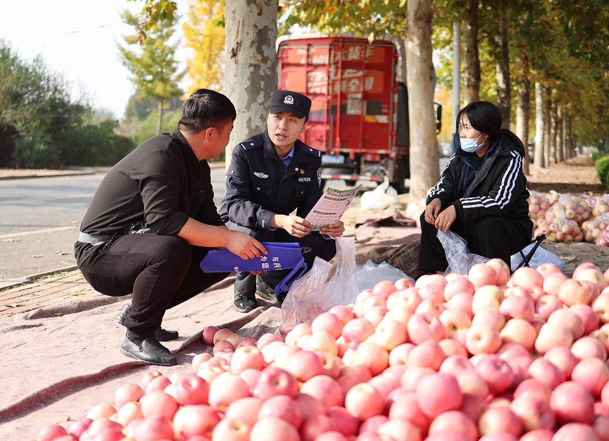連日來(lái),山東省煙臺(tái)市公安局福山分局經(jīng)偵大隊(duì)組織民警深入轄區(qū)蘋果園、果品交易場(chǎng)所,圍繞果農(nóng)群體易發(fā)的合同詐騙、非法集資等案件,向果農(nóng)詳細(xì)講解經(jīng)濟(jì)犯罪最新特點(diǎn)、伎倆和手段等,進(jìn)一步增強(qiáng)果農(nóng)的防范意識(shí)和能力。