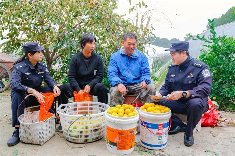 近日,江蘇省蘇州市吳江區(qū)橫扇街道新湖村迎來柑橘豐收,吳江區(qū)公安局橫扇派出所民警深入轄區(qū)柑橘種植基地開展走訪宣傳。圖為民警向種植戶開展反詐宣傳。