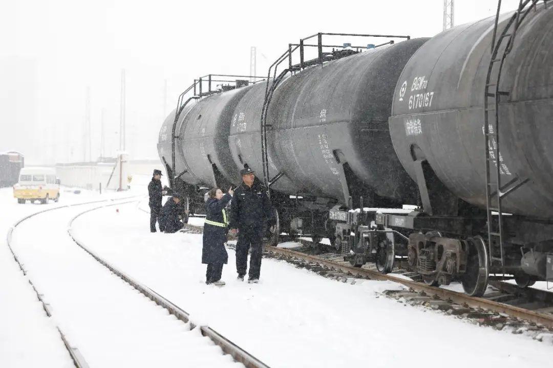 近日,烏魯木齊鐵路公安局庫爾勒公安處治安支隊會同庫爾勒站派出所深入轄區(qū)鐵路物流中心,對??寇圀w、危險易燃貨品開展防災減災專項排查,確保安全生產(chǎn)。圖為民警正在進行專項排查。