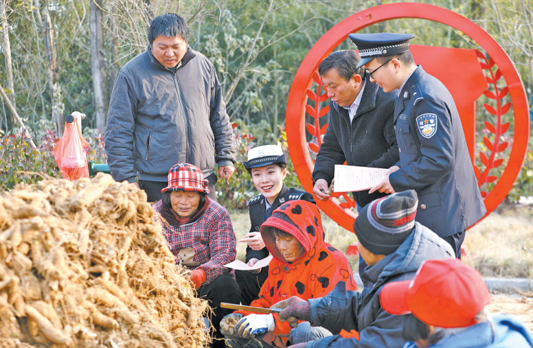 入冬以來,為提升群眾安全防范意識,安徽省舒城縣公安局交管大隊聯(lián)合張母橋派出所開展“冬日走訪 守護安全”主題宣教活動,組織民輔警走村入戶,傾聽群眾對公安機關工作的意見和建議,積極宣講公安機關服務政策。圖為民輔警向群眾講解冬季安全防范知識。