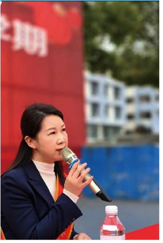圖為2024年3月,李艷在松桃苗族自治縣群希中學(xué)為全體師生宣講如何防范校園欺凌。 資料圖片