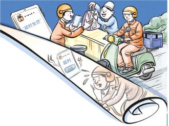 戴翔也有類似的感受。以前在常州一家奶茶店取餐時(shí),商家爆單,他等了15分鐘后急得直拍桌子:“這單超時(shí)要扣10元,你負(fù)責(zé)嗎?”店員也來了火氣:“忙不過來,你愛等不等!”現(xiàn)在遇到這種情況,戴翔會(huì)在App上點(diǎn)“報(bào)備出餐慢”,先去送其他順路訂單,“等回來再取餐也不會(huì)超時(shí),商家還會(huì)主動(dòng)跟我說‘謝謝體諒’”。