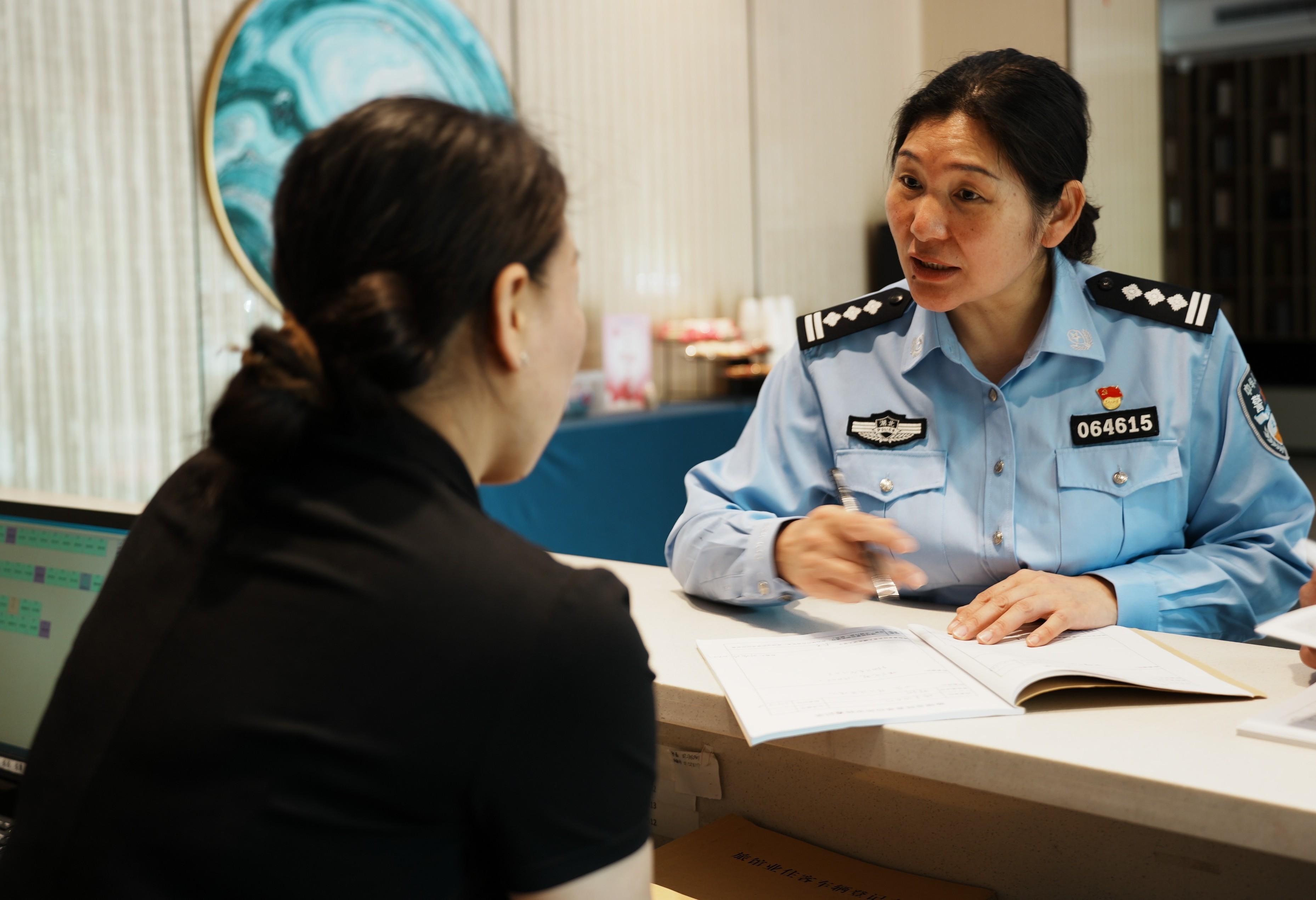 圖為社區(qū)民警劉瑞玲在對轄區(qū)單位場所開展例行檢查。