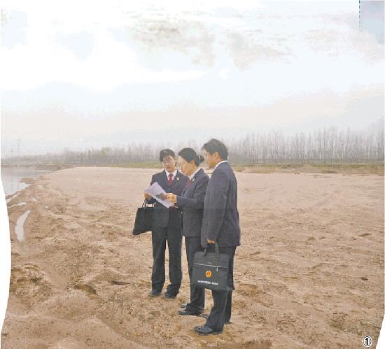 圖① 2026年3月19日,陜西省秦嶺北麓地區(qū)人民檢察院公益訴訟辦案人員在西安市某區(qū)渭河某段現(xiàn)場調(diào)查。