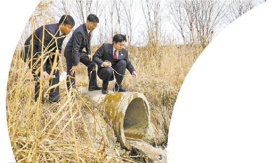 圖③ 2025年2月,陜西省關中平原地區(qū)人民檢察院公益訴訟辦案人員在排污口取證。