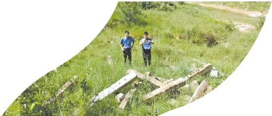 圖② 2025年8月29日,陜西省陜北高原地區(qū)人民檢察院公益訴訟辦案人員對鐵路橋下拋撒軌枕現(xiàn)場勘查。