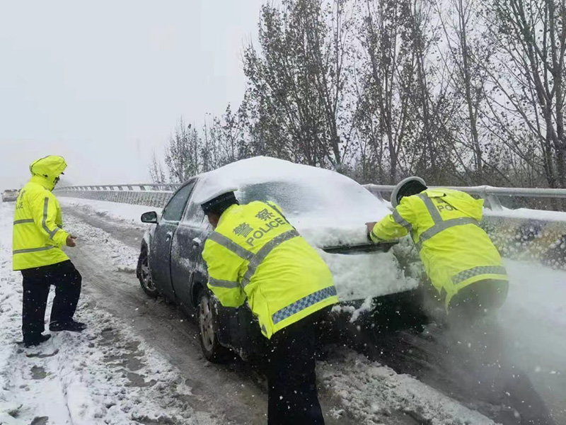 面對暴雪來襲,山東省濟(jì)南市公安局長清區(qū)分局多警聯(lián)動(dòng),巡警、交警和各派出所共同加大轄區(qū)治安交通巡防力度,通過在易發(fā)交通事故等重點(diǎn)路段采取定點(diǎn)執(zhí)勤和巡邏管控相結(jié)合的措施,幫助群眾解決上路期間發(fā)生的問題。11月7日上午10時(shí)30分,長清區(qū)交警大隊(duì)在大學(xué)城丁香路、紫薇路等重點(diǎn)路段執(zhí)勤中發(fā)現(xiàn)有拋錨車輛停在路中間,民警迅速前往救助,幫助過路受阻車輛及群眾,將車輛推至安全區(qū)域,并疏導(dǎo)交通、維持通行秩序。崮山派出所民警在國道104線巡邏時(shí)接到群眾求助,幫助遇困群眾車輛。歸德中隊(duì)交警幫助遇困車輛上的老人,將老人攙扶到中隊(duì)休息并送上熱水。