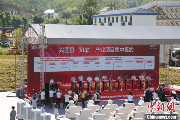 當(dāng)天的“紅軌”產(chǎn)業(yè)招商推介會(huì)上,現(xiàn)場(chǎng)集中簽約《興國(guó)紅軌磁浮二期設(shè)計(jì)、建設(shè)、運(yùn)營(yíng)一體化項(xiàng)目》等10個(gè)項(xiàng)目,總投資114.3億元。(完)