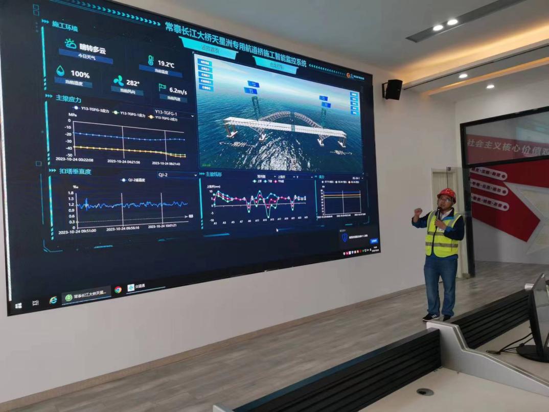 數(shù)字孿生系統(tǒng),不僅方便了解施工現(xiàn)狀,而且能進(jìn)行仿真推演,優(yōu)化施工方案。在天星洲專用航道橋施工過程中,利用數(shù)字孿生技術(shù),搭建云端無線采集系統(tǒng),全方位實(shí)時(shí)獲取橋梁施工相關(guān)數(shù)據(jù)。讓數(shù)據(jù)“在電腦上多跑路”,對(duì)施工控制數(shù)據(jù)進(jìn)行實(shí)時(shí)分析,實(shí)時(shí)預(yù)警,確保結(jié)構(gòu)施工過程始終處于可控狀態(tài);以不同顏色區(qū)分當(dāng)前桿件安裝狀態(tài),實(shí)現(xiàn)工序級(jí)別的形象進(jìn)度展示及基于工序的質(zhì)量驗(yàn)收;而且平臺(tái)內(nèi)可以對(duì)施工工序模擬,保障現(xiàn)場(chǎng)構(gòu)件保供安排,確保施工質(zhì)量、物資調(diào)度、進(jìn)度安排合理可控……