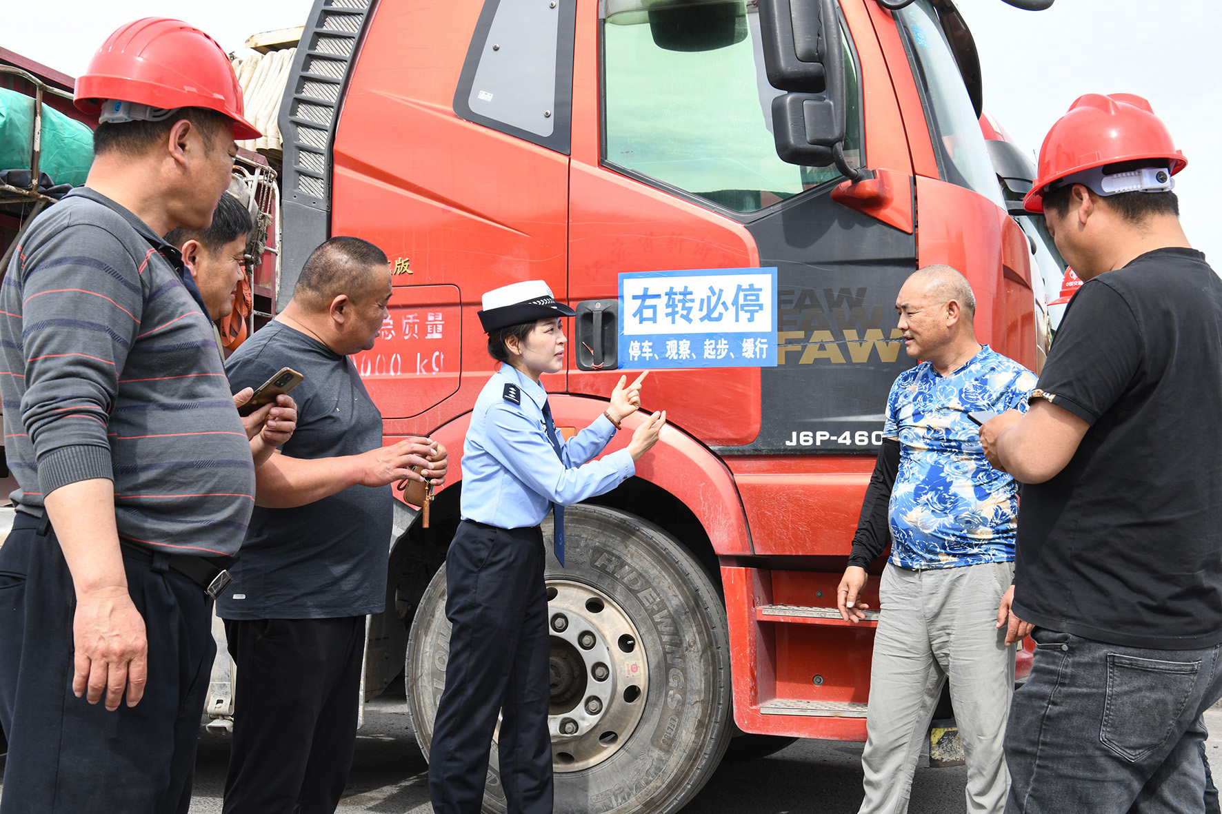5月10日,安徽省含山縣公安局交管大隊(duì)結(jié)合“右轉(zhuǎn)必?!惫ぷ髦攸c(diǎn),組織警力深入轄區(qū)渣土運(yùn)輸企業(yè)開(kāi)展宣傳警示活動(dòng)。