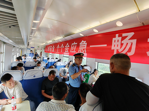 營造濃厚安全氛圍。寧波二隊黨總支在班前學(xué)習(xí)會、列車運行等環(huán)節(jié)開展了形式多樣的“安全生產(chǎn)月”宣傳活動。通過懸掛安全標語、播放安全宣傳片等方式,向職工普及鐵路安全知識,提高職工的安全意識和自我保護能力,做到警鐘長鳴。同時,他們還組織職工家屬代表到車隊交流安全生產(chǎn)體會,通報單位安全生產(chǎn)形勢,凝聚共保安全生產(chǎn)營造幸福生活的共識。在列車上開展了旅客安全知識宣講活動,進一步增強了旅客對鐵路安全工作的關(guān)注、理解和支持。