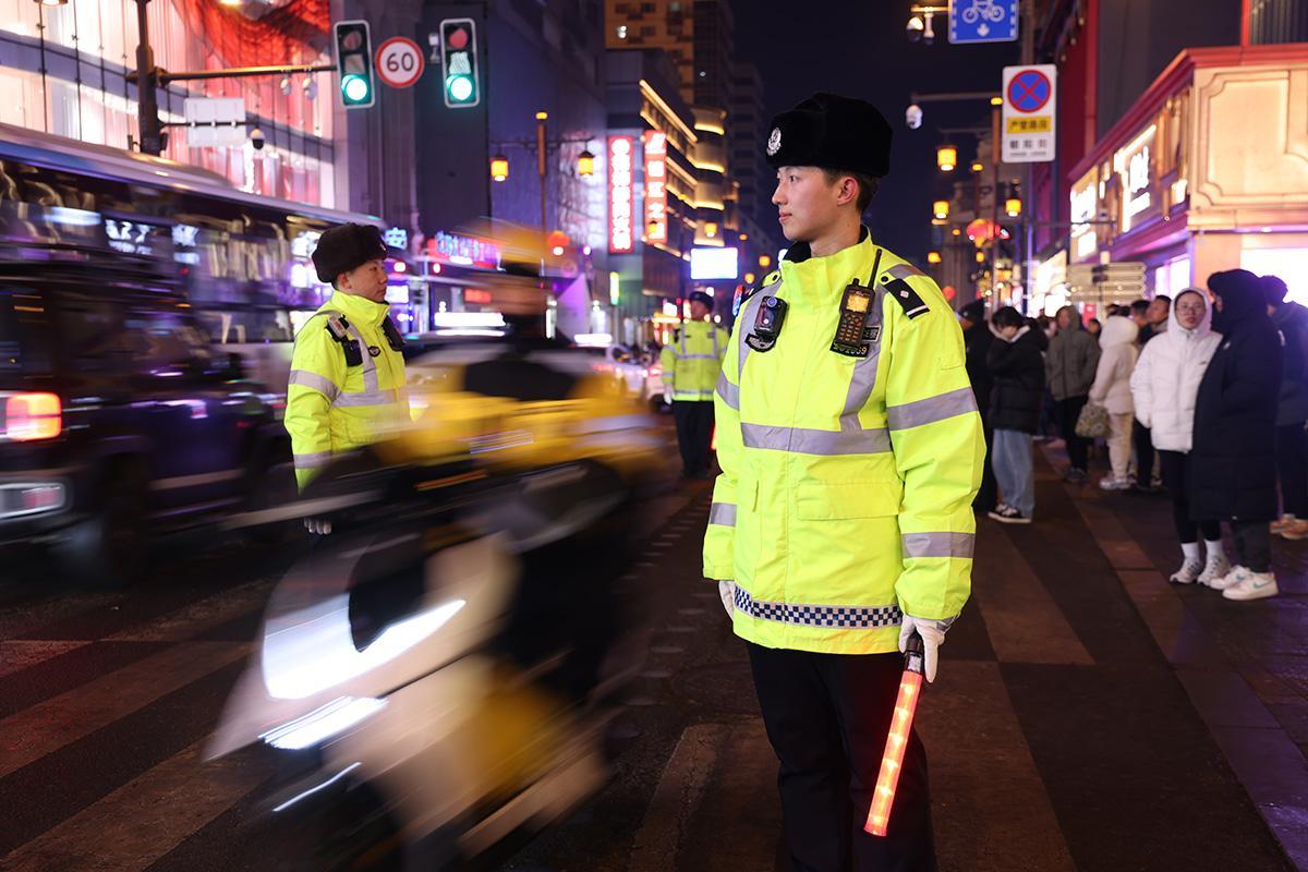 2月11日,遼寧省沈陽市公安局交通警察局組織民警在車流、人流密集區(qū)域疏導(dǎo)交通、排查隱患,確保群眾平安出行。