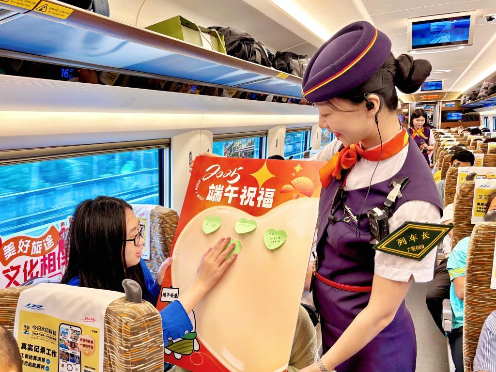 粽香四溢,情滿旅途。在弘揚中華優(yōu)秀傳統(tǒng)文化的同時,鐵路部門還通過舉辦文藝演出,開展互動問答,設(shè)置旅途記憶板、心愿墻等形式,與旅客開展主題式互動,讓大家在旅途中收獲更多知識、快樂和溫暖。