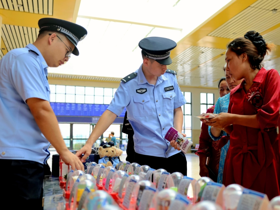 在第38個(gè)國際禁毒日來臨之際,烏魯木齊鐵路公安局喀什公安處在喀什火車站候車廳開展以“健康人生 綠色無毒”為主題的禁毒宣傳活動(dòng)。民警通過懸掛橫幅、擺放展板、發(fā)放宣傳資料等方式,向旅客介紹新型毒品的基本特征、種類以及危害性,并結(jié)合典型案例講解防范毒品技巧,引導(dǎo)群眾牢固樹立“珍惜生命、遠(yuǎn)離毒品”的意識(shí),自覺抵制毒品誘惑,并鼓勵(lì)廣大群眾積極向公安機(jī)關(guān)及有關(guān)單位舉報(bào)毒品違法犯罪行為。