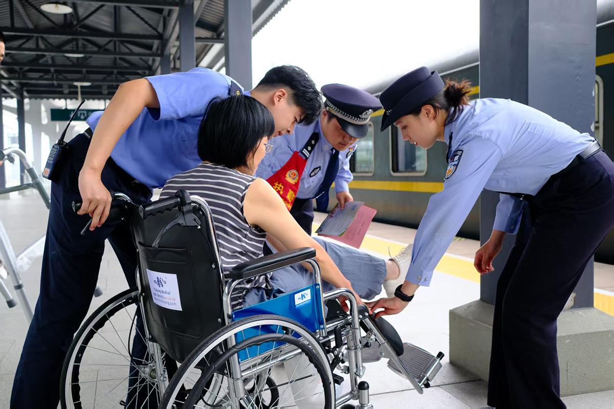 10月8日,上海鐵路公安局杭州鐵路公安處嘉興車站派出所與杭州乘警支隊(duì)組織民警在車站及站臺(tái)向旅客普及購票反詐、行李防盜等安全常識(shí),并為重點(diǎn)旅客提供暖心服務(wù),守護(hù)旅客返程平安。