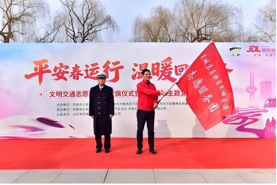 最后,出席活動(dòng)的濟(jì)南交警支隊(duì)、歷下區(qū)交警大隊(duì)負(fù)責(zé)人等共同為“泉城快遞文明交通志愿服務(wù)團(tuán)”授旗,并為志愿者代表佩戴“文明交通志愿者”袖標(biāo),標(biāo)志著這支由快遞員組成的文明交通志愿服務(wù)隊(duì)伍正式成立。春運(yùn)期間,該志愿服務(wù)團(tuán)將化身流動(dòng)的交通安全宣傳站,在走街串巷進(jìn)行配送服務(wù)、連接千家萬戶的同時(shí),主動(dòng)傳遞平安出行理念,助力筑牢春運(yùn)交通安全防線。
