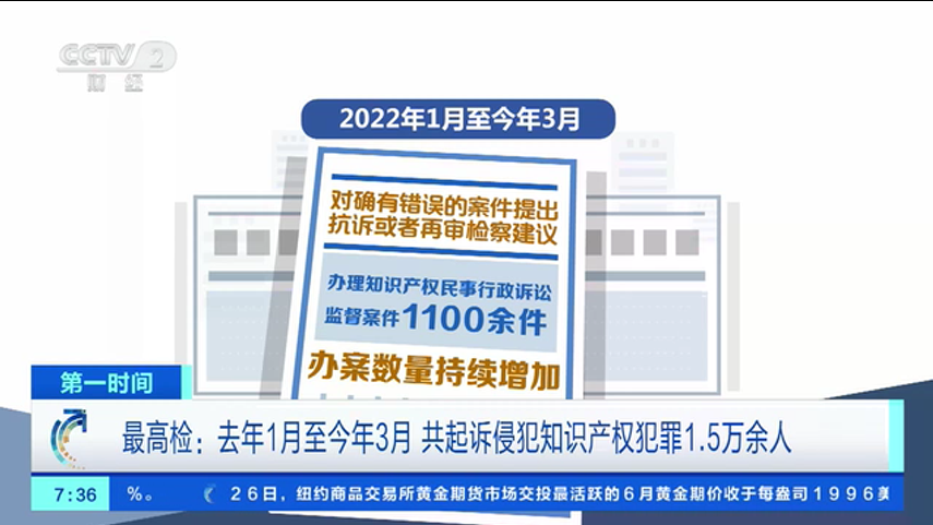 最高檢:去年1月至今年3月 共起訴侵犯知識產權犯罪1.5萬余人