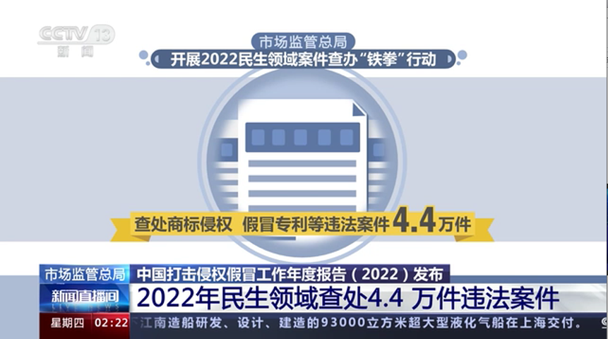 市場監(jiān)管總局 中國打擊侵權假冒工作年度報告(2022)發(fā)布 2022年民生領域查處4.4萬件違法案件