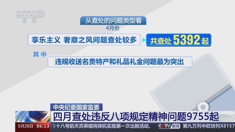 中央紀(jì)委國家監(jiān)委 四月查處違反八項(xiàng)規(guī)定精神問題9755起