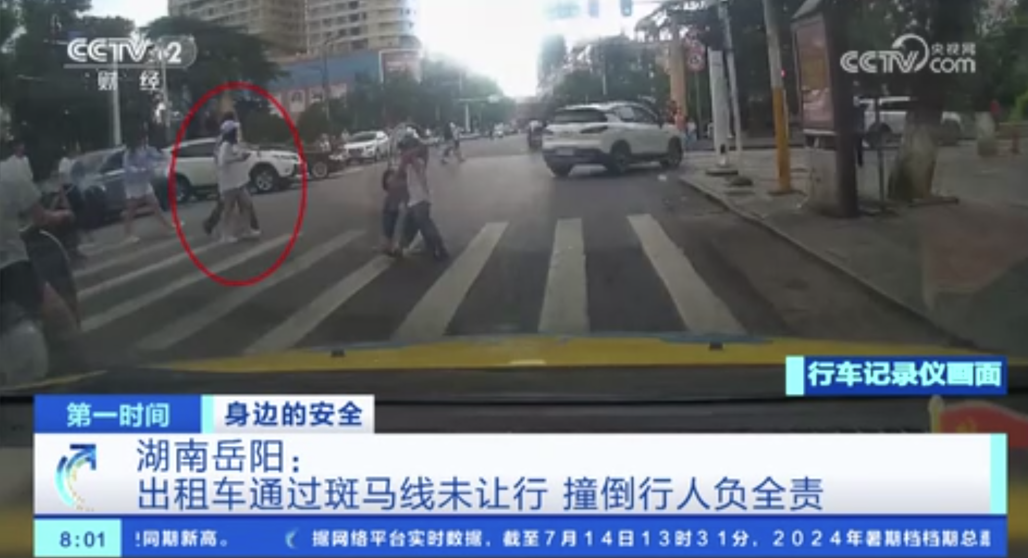湖南岳陽(yáng):出租車(chē)通過(guò)斑馬線未讓行 撞倒行人負(fù)全責(zé)