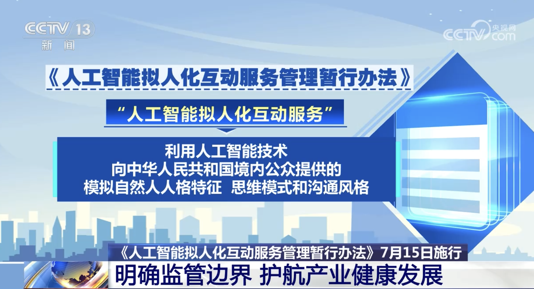 《人工智能擬人化互動服務管理暫行辦法》7月15日施行 明確監(jiān)管邊界 護航產(chǎn)業(yè)健康發(fā)展