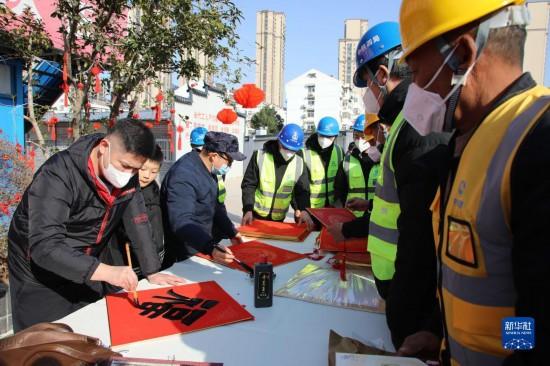 春節(jié)臨近,多地組織書(shū)法志愿者走進(jìn)社區(qū)、工地等場(chǎng)所,為人們書(shū)寫(xiě)春聯(lián)和福字,迎接春節(jié)的到來(lái)。