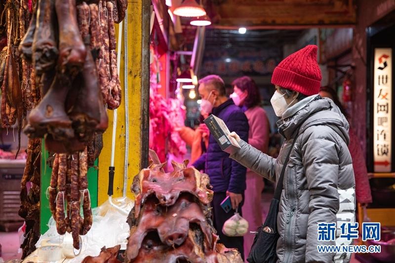 近日,成都市青羊區(qū)新開寺街的肉鋪迎來了一年中的銷售高峰,顧客在臘味飄香中選購年夜飯的主角——香腸、臘肉;位于金牛區(qū)的成都荷花池批發(fā)市場也換上“一身紅裝”,店鋪內(nèi)人頭攢動,市民與商販采購燈籠、春聯(lián)等年貨,期望來年紅紅火火……臨近春節(jié),成都街頭巷尾的年味日漸濃郁。(拍攝:張可凡)