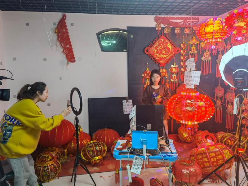 “如果買回去春節(jié)用的,可以看看3號(hào)鏈接,這款燈籠比較喜慶,適合家用……”在村內(nèi)一棟3層辦公樓中,7個(gè)直播間正在直播帶貨。負(fù)責(zé)人蘇云廣介紹,最近每天的營(yíng)業(yè)額都超過了30萬元。