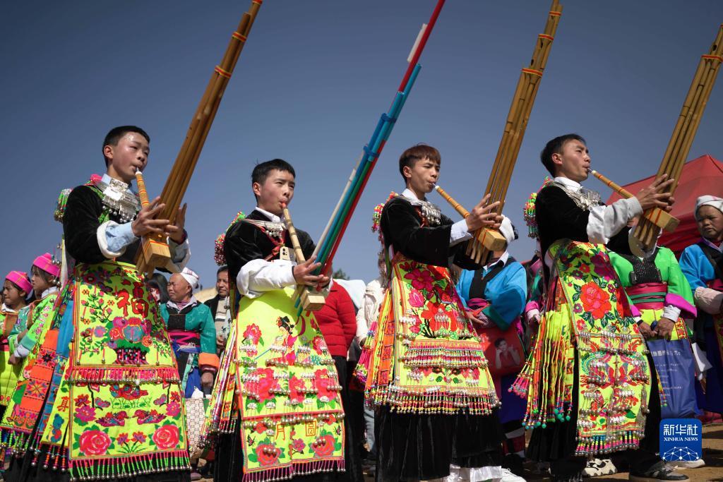 1月29日,苗族群眾在中排村參加“跳月”活動。新華社記者 楊文斌 攝