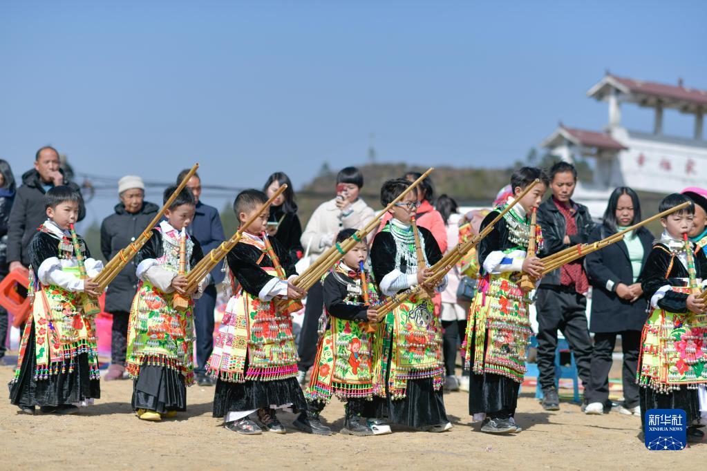 1月29日,苗族孩子在中排村參加“跳月”活動(dòng)。