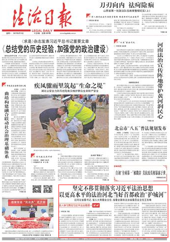 三是強化宣傳宣講,持續(xù)營造濃厚氛圍。結合深化黨的創(chuàng)新理論“六進”和學?!叭M”工作,精心組織習近平法治思想大學習大培訓大研討活動,各級黨委、政府通過集中學習、專題講座、專家輔導等方式帶頭抓好學習宣傳,省級組織《河北日報》、河北廣播電視臺、長城新媒體等主流媒體開展融合報道,各地組織開展青年普法志愿者法治文化基層行活動,全省舉辦各類宣講2400多場次,參與人數(shù)114.4萬人,有力推動了習近平法治思想在燕趙大地落地生根、開花結果。我省全國法治縣(市、區(qū))創(chuàng)建活動先進單位達到71個、民主法治示范村210個,均居全國前列。