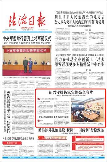 一直以來,紹興都倍加珍惜“楓橋經(jīng)驗(yàn)”這個(gè)“傳家寶”,倍加呵護(hù)這張“金名片”。去年以來,紹興市起草制定《紹興市“楓橋經(jīng)驗(yàn)”傳承發(fā)展條例》(目前已提請(qǐng)省人大常委會(huì)審議批準(zhǔn)),通過立法,把“楓橋經(jīng)驗(yàn)”這一基層治理經(jīng)驗(yàn)上升為普遍的法治規(guī)則,總結(jié)提煉轉(zhuǎn)化為社會(huì)治理中具有普遍意義的法治模式。