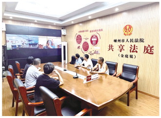 圖為2022年8月5日,紹興嵊州金庭鎮(zhèn)當(dāng)事人在“共享法庭”與法官遠(yuǎn)程連線,在線化解糾紛。 紹興中院供圖