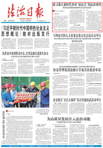 跟隨司法部“2023年法治鄉(xiāng)村基層行”浙江站采訪活動(dòng)的行進(jìn)步伐,《法治日?qǐng)?bào)》記者奔走在新時(shí)代鄉(xiāng)村的希望田野上,探尋鄉(xiāng)村“綠富美”的法治密碼,耳畔是鄉(xiāng)村振興的交響樂(lè),迎面是散落在青山綠水間的特色村景,一幅現(xiàn)代版“富春山居圖”徐徐展開(kāi)。
