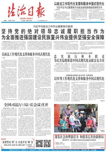 “貴州省畢節(jié)市認(rèn)真貫徹落實黨中央關(guān)于全面依法治國的重大決策部署,緊緊圍繞走前列、作示范的目標(biāo),健全習(xí)近平法治思想學(xué)習(xí)轉(zhuǎn)化、市縣黨委推進法治建設(shè)、探索法治鄉(xiāng)鎮(zhèn)建設(shè)、落實示范創(chuàng)建4項機制,找準(zhǔn)行政執(zhí)法監(jiān)督、民主法治示范、司法責(zé)任落實、強化多元解紛、抓實法治督察5個切入口,推動法治政府建設(shè)率先取得新突破,帶動法治社會建設(shè)邁上新臺階?!碑吂?jié)市司法局局長李斌近日接受《法治日報》記者采訪時說。