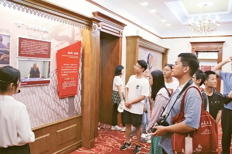 綏芬河國家安全教育展館面積約1100平方米,由序廳、總體國家安全觀、無名豐碑、周恩來展區(qū)等8個部分組成,展示了總體國家安全觀、黨的隱蔽戰(zhàn)線光輝歷史、當(dāng)前斗爭形勢等內(nèi)容。李大釗、周恩來等老一輩革命家在綏芬河出入境蘇聯(lián)時曾秘密下榻于此。作為早期紅色秘密國際通道、秘密交通線掩護站點,展館建筑如今成為珍貴的紅色革命歷史遺址。圖為2023年8月15日,大學(xué)生在展館內(nèi)參觀學(xué)習(xí)。國安宣工作室供圖